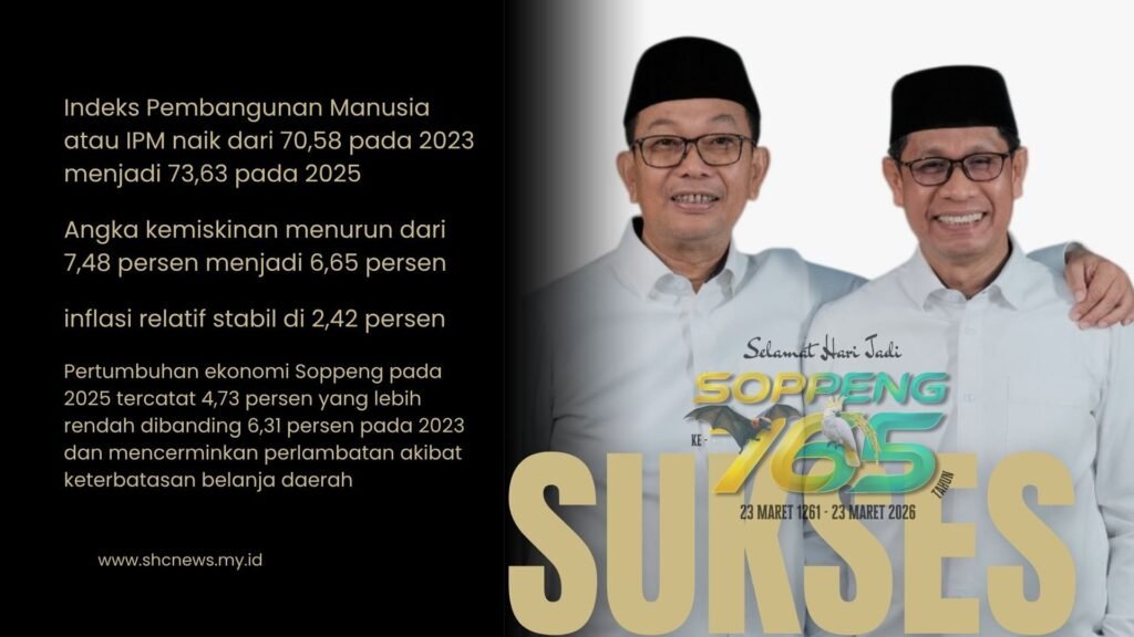 Beberapa indikator menunjukkan bagaimana langkah-langkah ini berjalan karena pertumbuhan ekonomi Soppeng pada 2025 tercatat 4,73 persen yang lebih rendah dibanding 6,31 persen pada 2023 dan mencerminkan perlambatan akibat keterbatasan belanja daerah.