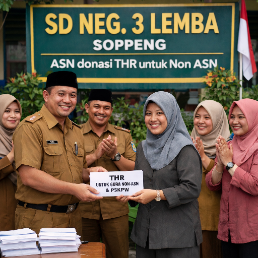 “Ini adalah bentuk kepedulian dan kebersamaan keluarga besar SDN 3 Lemba. Para guru PNS dengan sukarela berbagi kepada rekan-rekan Non-ASN dan P3KPW. Semoga kebersamaan seperti ini terus terjaga dan menjadi teladan bagi siswa tentang arti saling peduli dan berbagi,” ujarnya.